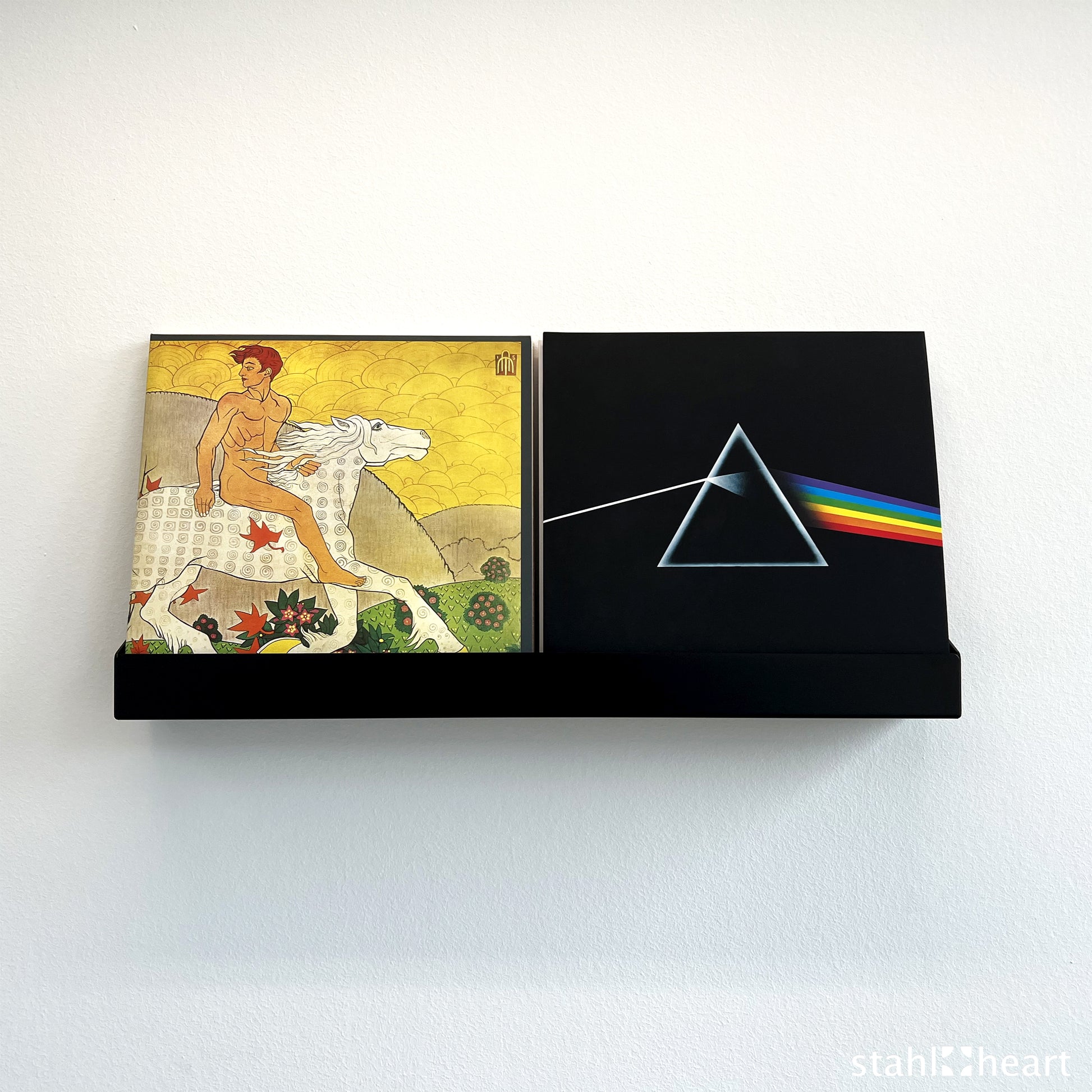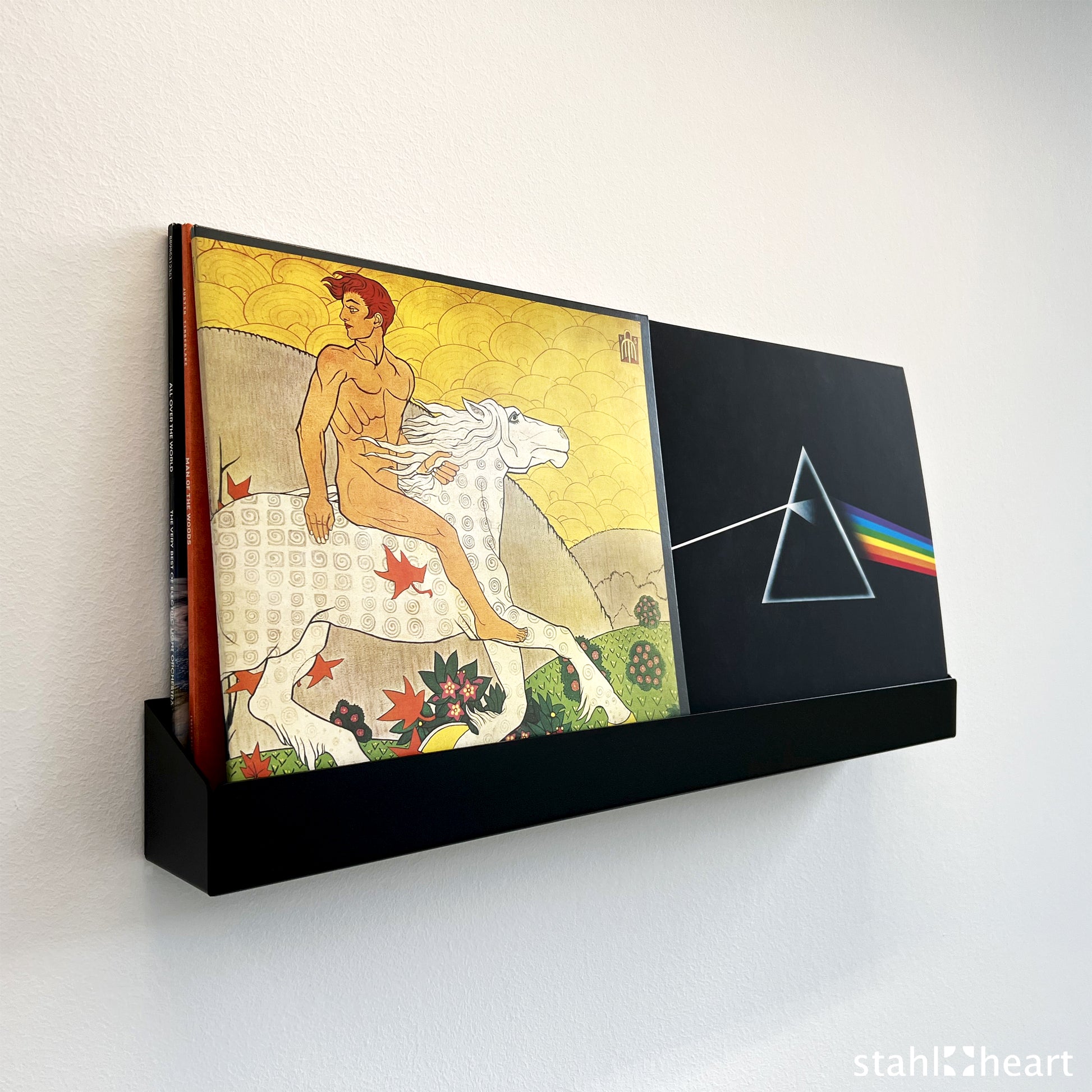 Die Größe ist auf das Format A4 und Schallplatten abgestimmt, somit können 3 Magazine/ Zeitschriften oder 2 Schallplatten nebeneinander positioniert werden.